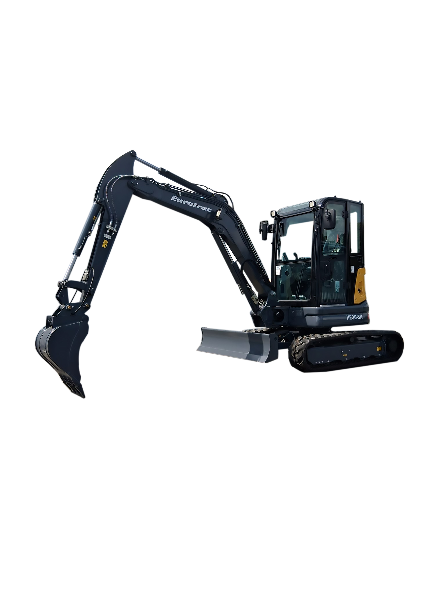 Der Eurotrac HE 36 SR bietet eine komfortable Bedienungsumgebung, die zusammen mit der hervorragenden Sicht für Sicherheit und eine kompromisslose Bedienung sorgt. Durch seine präzise Steuerung ist der Eurotrac HE 36 SR auch ideal für Arbeiten in engen Bereichen.